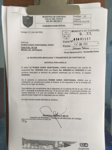 Notificaciones de TransitoNotificaciones de Transito 2022 Notificación al sr. Rubén Darío Aristizábal Chica Por Transito - 14 julio, 2022 0 622 FacebookTwitterPinterestWhatsApp notificacion srDescarga