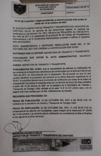 Notificaciones de TransitoNotificaciones de Transito 2021 Resoluciòn 30455 Por Transito - 14 octubre, 2021 0 737 FacebookTwitterPinterestWhatsApp ACTA DE FIJACION Y DESFIJACION DEL AVISO COMPARENDOS 2021Descarga NOTIFICACION POR AVISO N 30456 DEL 14 DE OCTUBRE DEL 2021Descarga RESOLUCION N 30455 DEL 14 DE OCTUBRE DEL 2021 QUE ORDENA LA NOTIFICACION POR AVISODescarga mde