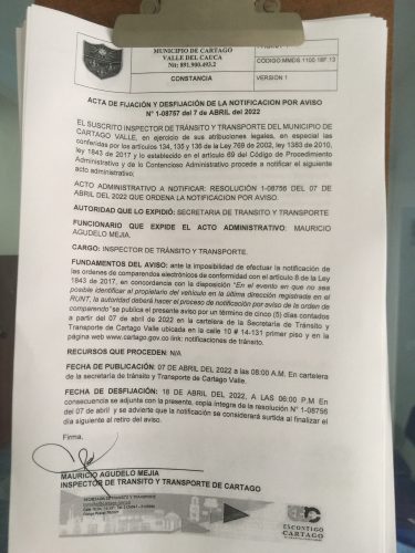 Notificaciones de TransitoNotificaciones de Transito 2022 Resolución No. 1-08756 Por Transito - 7 abril, 2022 0 656 FacebookTwitterPinterestWhatsApp ACTA DE FIJACION Y DESFIJACION DEL AVISO COMPARENDOS 2022Descarga NOTIFICACION POR AVISO No. 1-08757 DEL 07 DE ABRIL DEL 2022Descarga RESOLUCION No. 1-08756 DEL 07 DE ABRIL DEL 2022 QUE ORDENA LA NOTIFICACION POR AVISODescarga