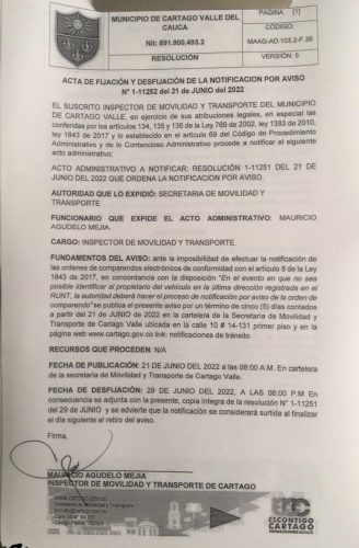 Notificaciones de TransitoNotificaciones de Transito 2022 Resolución No 1-11251 Por Transito - 21 junio, 2022 0 576 FacebookTwitterPinterestWhatsApp ACTA DE FIJACION Y DESFIJACION DEL AVISO COMPARENDOS 2022Descarga NOTIFICACION POR AVISO No. 1-11252 DEL 21 DE JUNIO DEL 2022Descarga RESOLUCION No. 1-11251 DEL 21 DE JUNIO DEL 2022 QUE ORDENA LA NOTIFICACION POR AVISODescarga