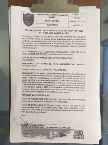 Notificaciones de TransitoNotificaciones de Transito 2022 Resolución No. 1-14813 Por Transito - 1 agosto, 2022 0 768 FacebookTwitterPinterestWhatsApp ACTA DE FIJACION Y DESFIJACION DEL AVISO COMPARENDOS 2022Descarga NOTIFICACION POR AVISO No. 1-14814 DEL 00 DE JULIO DEL 2022Descarga RESOLUCION No. 1-14813 DEL DE JULIO DEL 2022 QUE ORDENA LA NOTIFICACION POR AVISODescarga