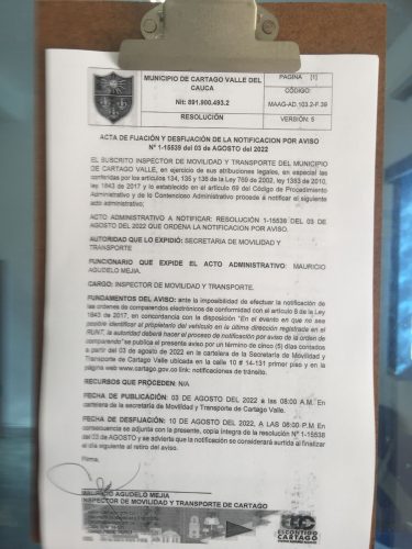 Notificaciones de TransitoNotificaciones de Transito 2022 Resolución No 1-15538 Por Transito - 3 agosto, 2022 0 603 FacebookTwitterPinterestWhatsApp ACTA DE FIJACION Y DESFIJACION DEL AVISO COMPARENDOS 2022Descarga NOTIFICACION POR AVISO No. 1-15539 DEL 03082022 DE JULIO DEL 2022Descarga RESOLUCION No. 1-15538 DEL DE JULIO DEL 2022 QUE ORDENA LA NOTIFICACION POR AVISODescarga