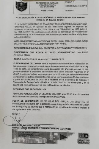 Notificaciones de TransitoNotificaciones de Transito 2021 Resolución No. 23954 Por Transito - 24 junio, 2021 0 711 FacebookTwitterPinterestWhatsApp ACTA DE FIJACION Y DESFIJACION DEL AVISO COMPARENDOS 2021Descarga NOTIFICACION POR AVISO N 23955 DEL 24 DE JUNIO DEL 2021Descarga RESOLUCION N 23954 DEL 24 DE JUNIO DEL 2021 QUE ORDENA LA NOTIFICACION POR AVISODescarga dav