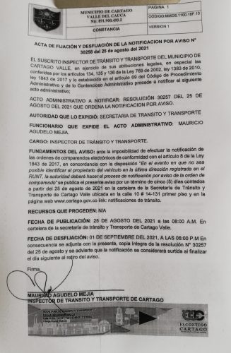 Notificaciones de TransitoNotificaciones de Transito 2021 Resolución No. 30257 Por Transito - 26 agosto, 2021 0 828 FacebookTwitterPinterestWhatsApp ACTA DE FIJACION Y DESFIJACION DEL AVISO COMPARENDOS 2021Descarga NOTIFICACION POR AVISO N 30258 DEL 25 DE AGOSTO DEL 2021Descarga RESOLUCION N 30257 DEL 25 DE AGOSTO DEL 2021 QUE ORDENA LA NOTIFICACION POR AVISODescarga dav